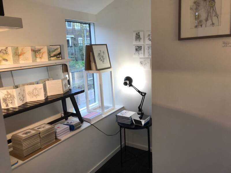 Een buurvrouw klopte aan de deur van Tiny Showroom. Onder haar arm hield ze een dik schetsboek: de tekeningen van Teus Rietveld (1945). Wilden we het werk wellicht exposeren? De buurvrouw vertelde dat Teus ervan droomde om zijn tekeningen op ansichtkaarten te zien verschijnen. Het kwam er niet van, Epilepsie werd hem in 2019 fataal.